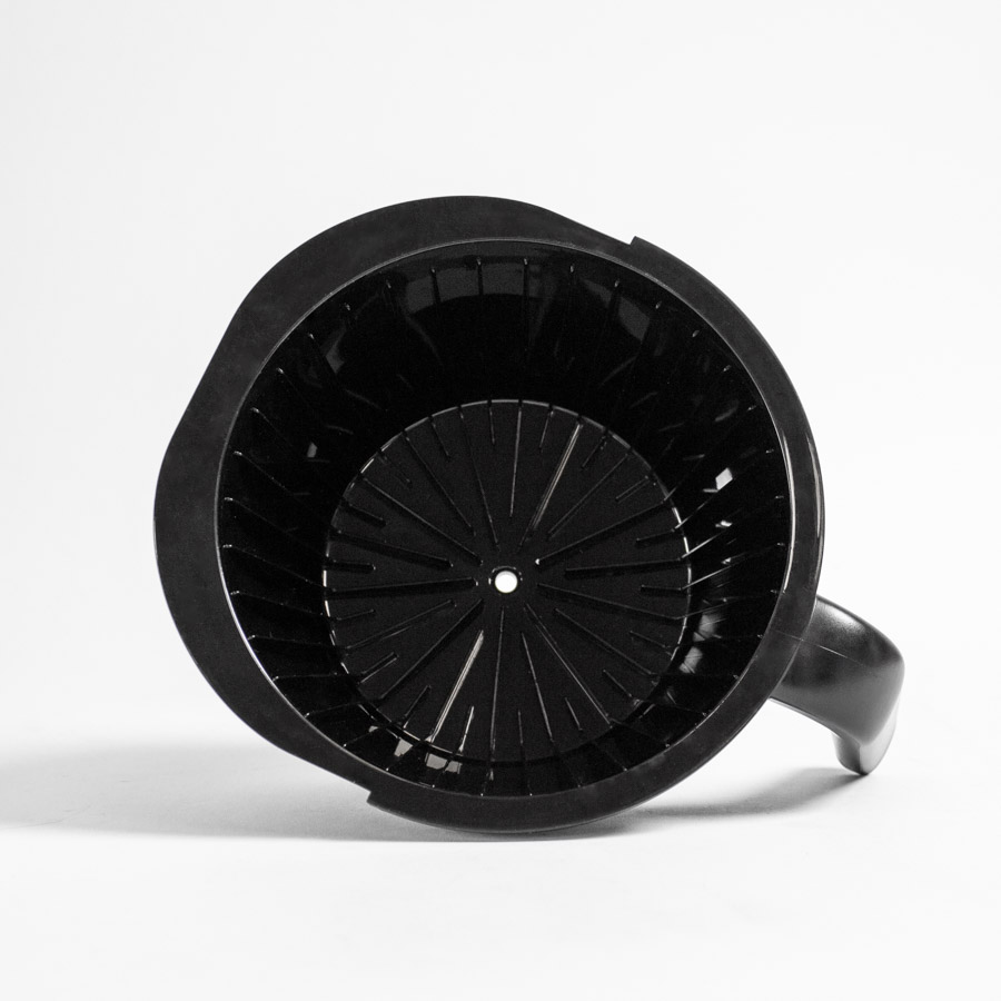 - Flat-bottomed filter basket for uniform extraction for ideal coffee flavor intensity and brew strength