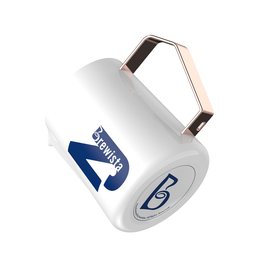 Die hohe ovale Form der Karaffe unterstützt den Milchfluss, indem sie den Abstand zur Oberfläche des Kaffees verringert. Die längere Rille und das V-förmige Design der Düse sorgen für eine bessere Kontrolle des Milchflusses.