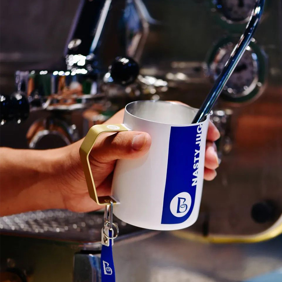 Die innovative Nasty Karaffe wurde in Zusammenarbeit mit Irvine Quek, dem Gewinner der World Latte Art Competition, entwickelt und ermöglicht eine perfekte Kontrolle für die Zubereitung von Lattes.
